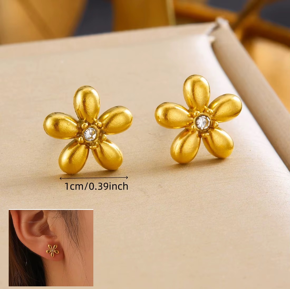 Categorías: Aretes, Aretes de acero enchapado en oro 18k
