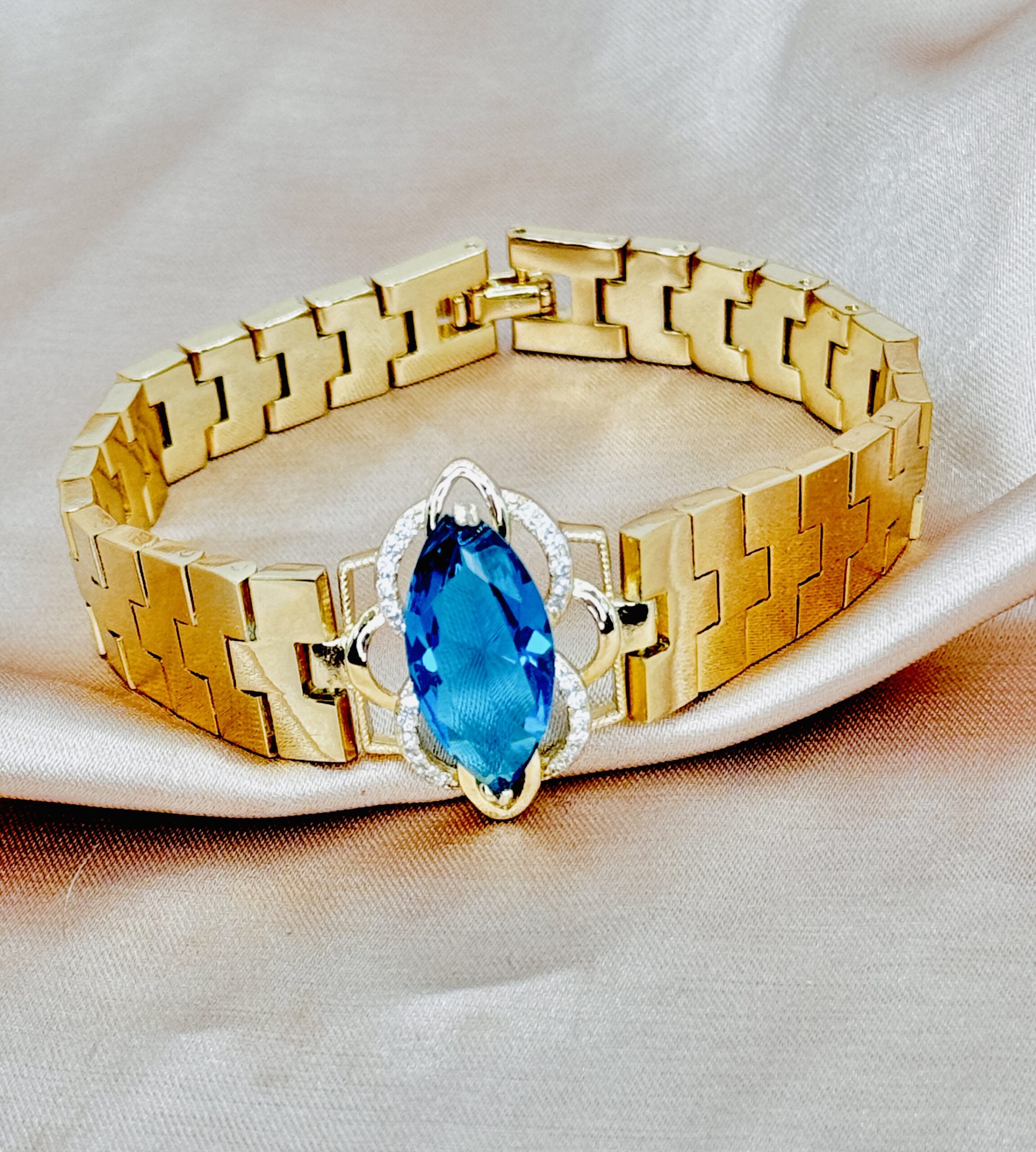 Brazalete de acero inoxidable enchapado en oro de 14k