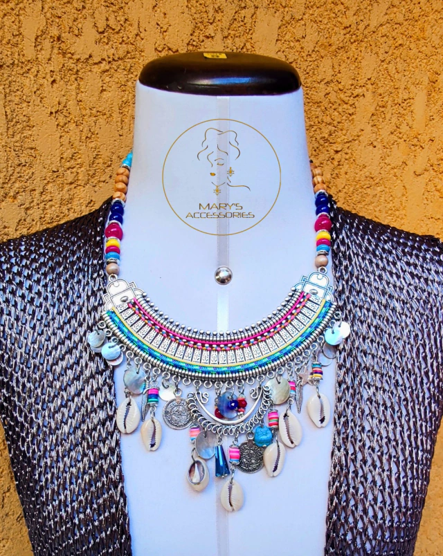 Maxicollar artesanal único, hecho a mano con materiales de alta calidad.